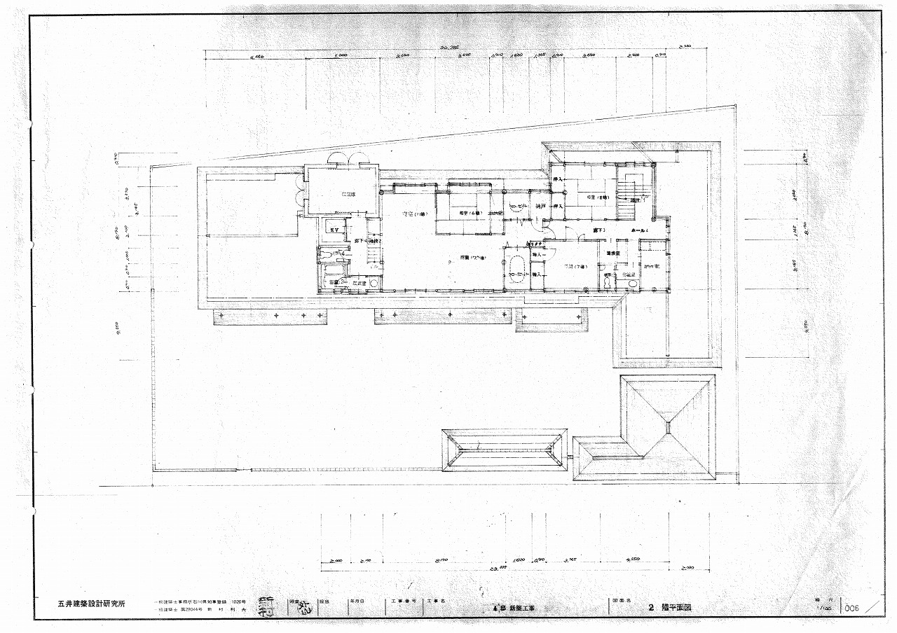 | 間取り | 和室×6、洋室×4、LDK27、南側広縁、浴室×3、WC×4、洗面×4、SR 収蔵庫10×2、納戸×3、EV、クローゼット×2、ホームエレベーター1基、車庫(車2台) |